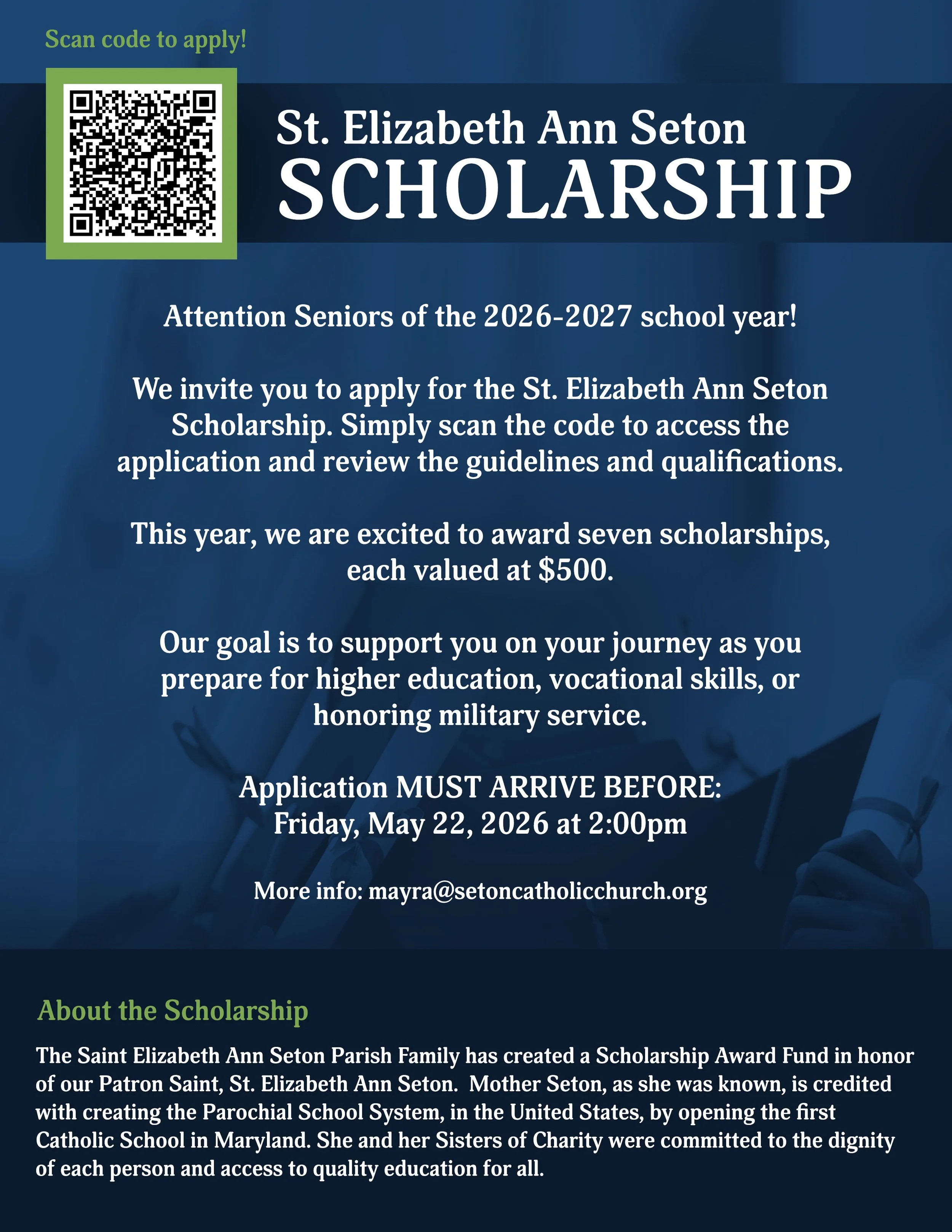 Welcome to St. Elizabeth Ann Seton Catholic Church, a place where faith and fellowship come together. Whether you're new here or returning, we invite you to explore and join our supportive community. Once you feel acquainted, we encourage you to register with our parish and become a part of our spiritual family.