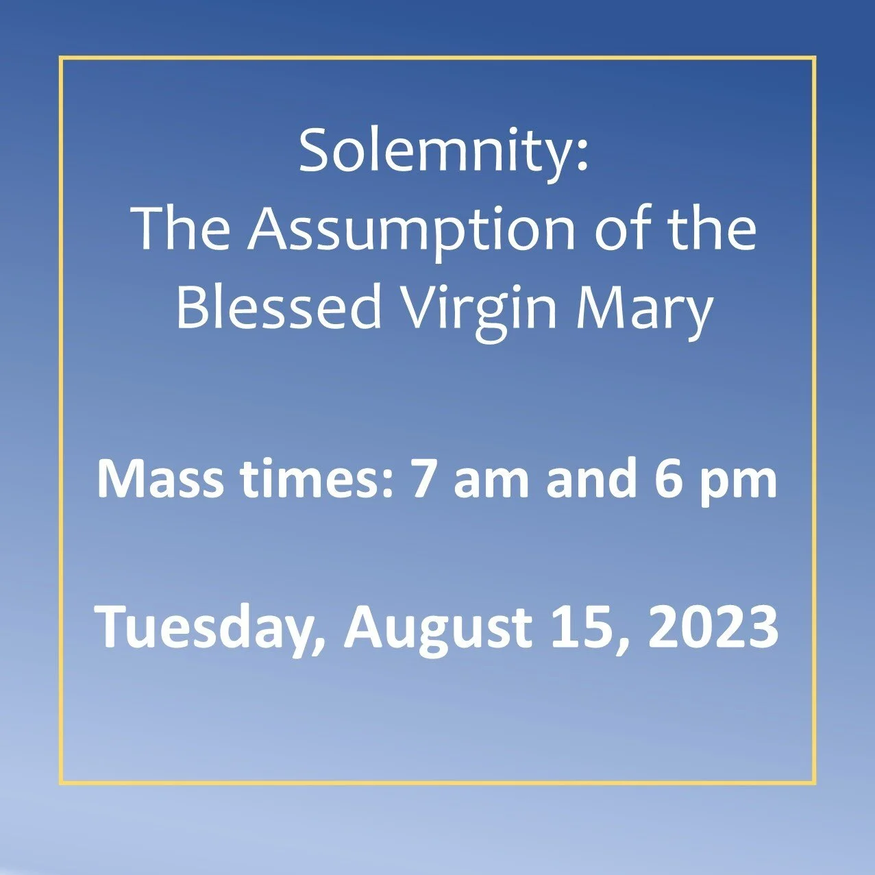 Feast of the Assumption of the Blessed Virgin Mary morning Mass Tuesday, August 15, 2023 7:00 AM 8:00 AM Google Calendar ICS